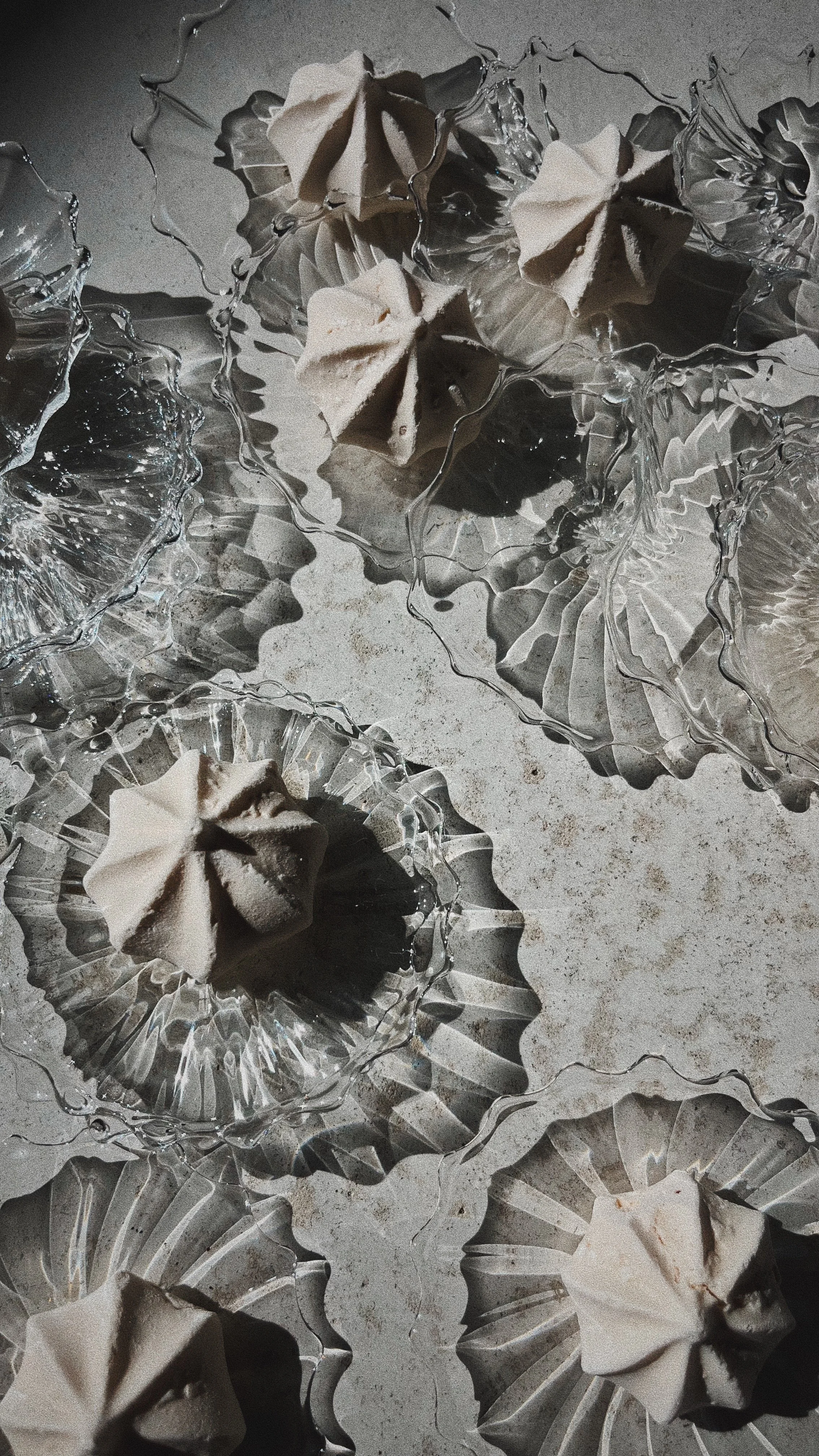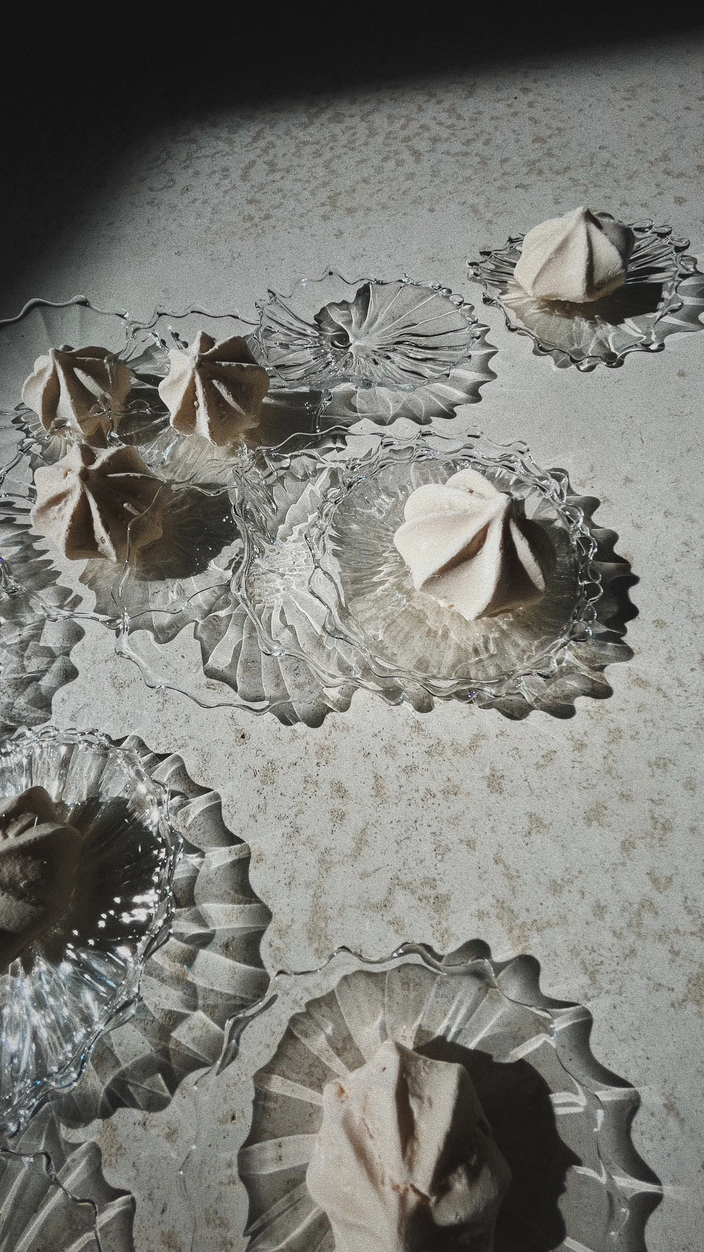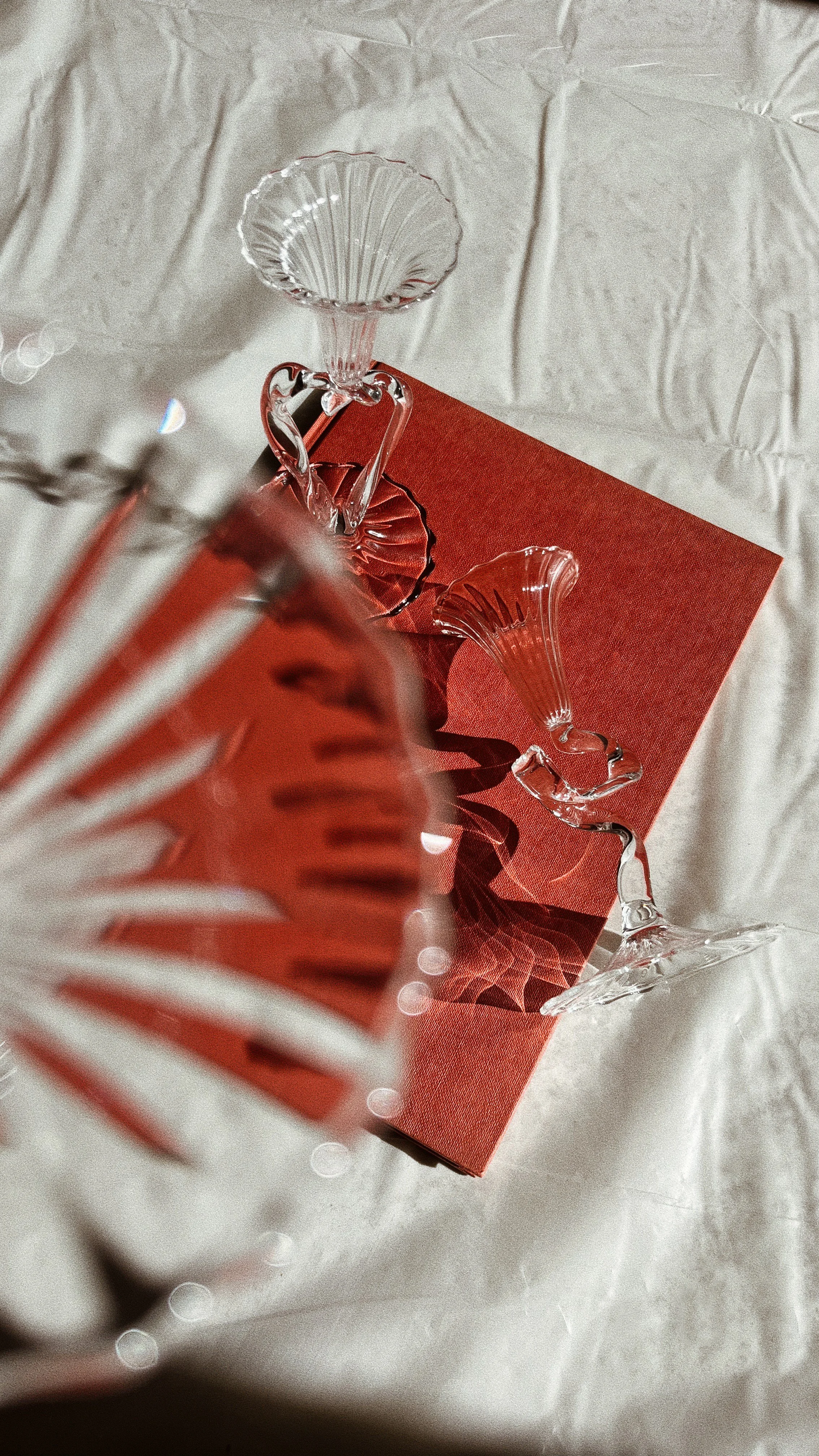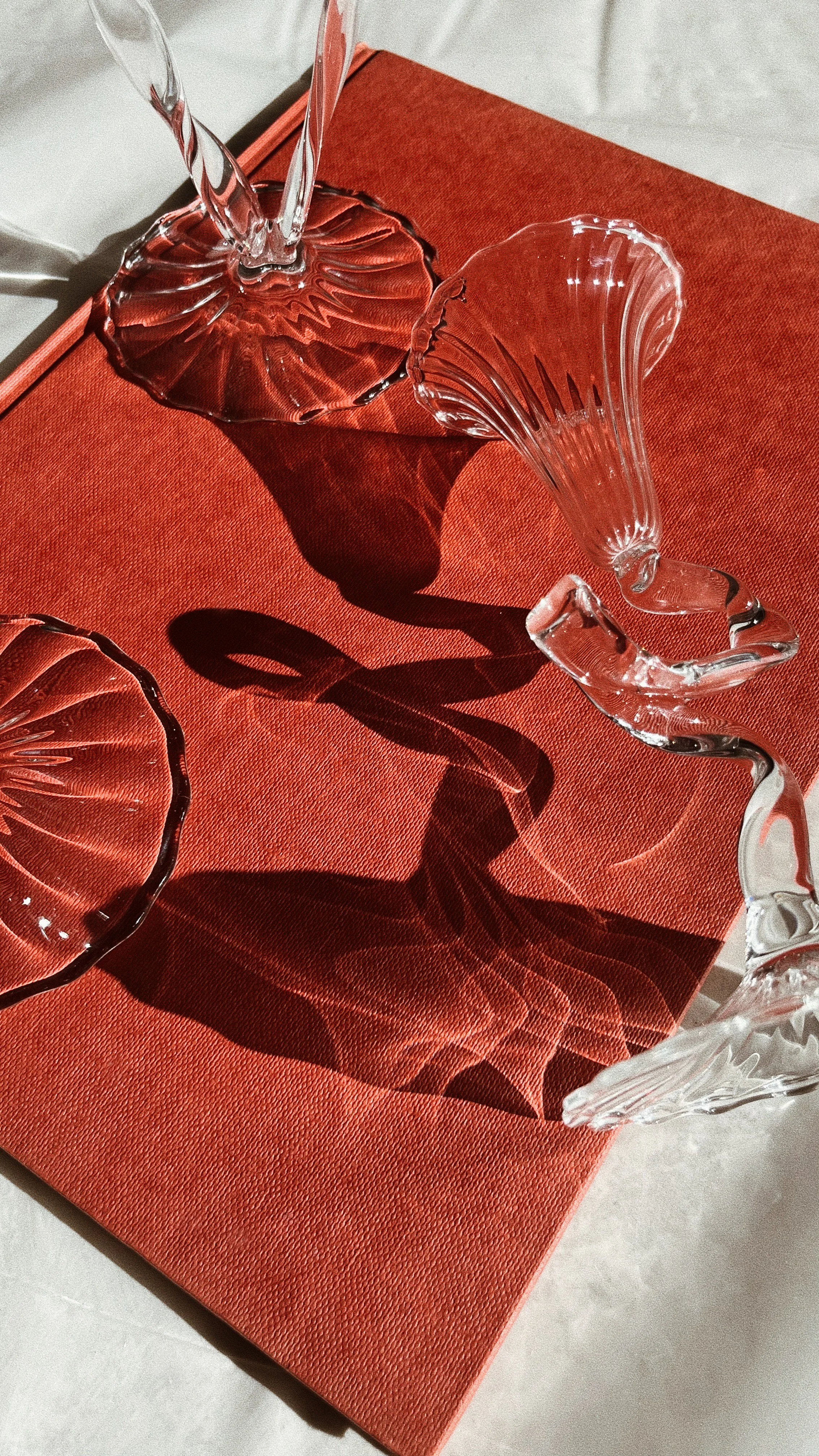 These candleholders features complementary sculptural foot shapes, showcasing a design that intentionally explores the glass material’s inherent unpredictability. The series includes matching glasses designed with ribbon-like, twisted, and organic feet. Each item in the collection exhibits subtle variations, with deliberate irregularities that accentuate the uniqueness of each artisanal manufacturing gesture and making every object a one-of-a-kind artwork.